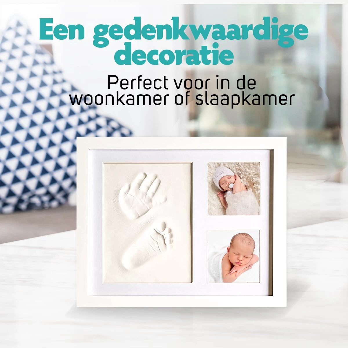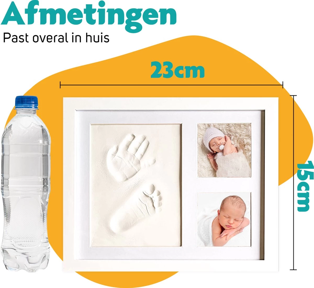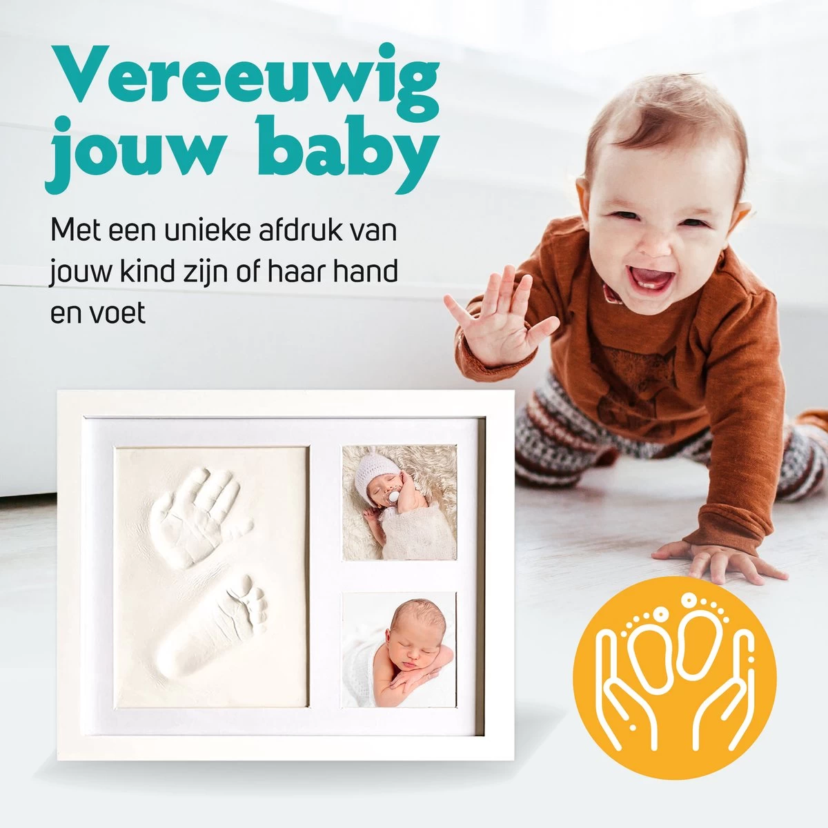 Als je net een baby hebt gekregen zijn de eerste momenten samen onvergetelijk. De eerste keer huilen, de eerste glimlach en natuurlijk die kleine handjes en voetjes. Wil jij ook graag een leuk aandenken hebben aan de eerste momenten met jouw kleintje? Vereeuwig dan de unieke hand- en voetafdrukken van jouw baby in dit unieke baby fotolijstje van Pora&co! Deze fotolijst is een echte musthave voor iedere nieuwe ouder en is ook een geweldig kraamcadeau om te geven.