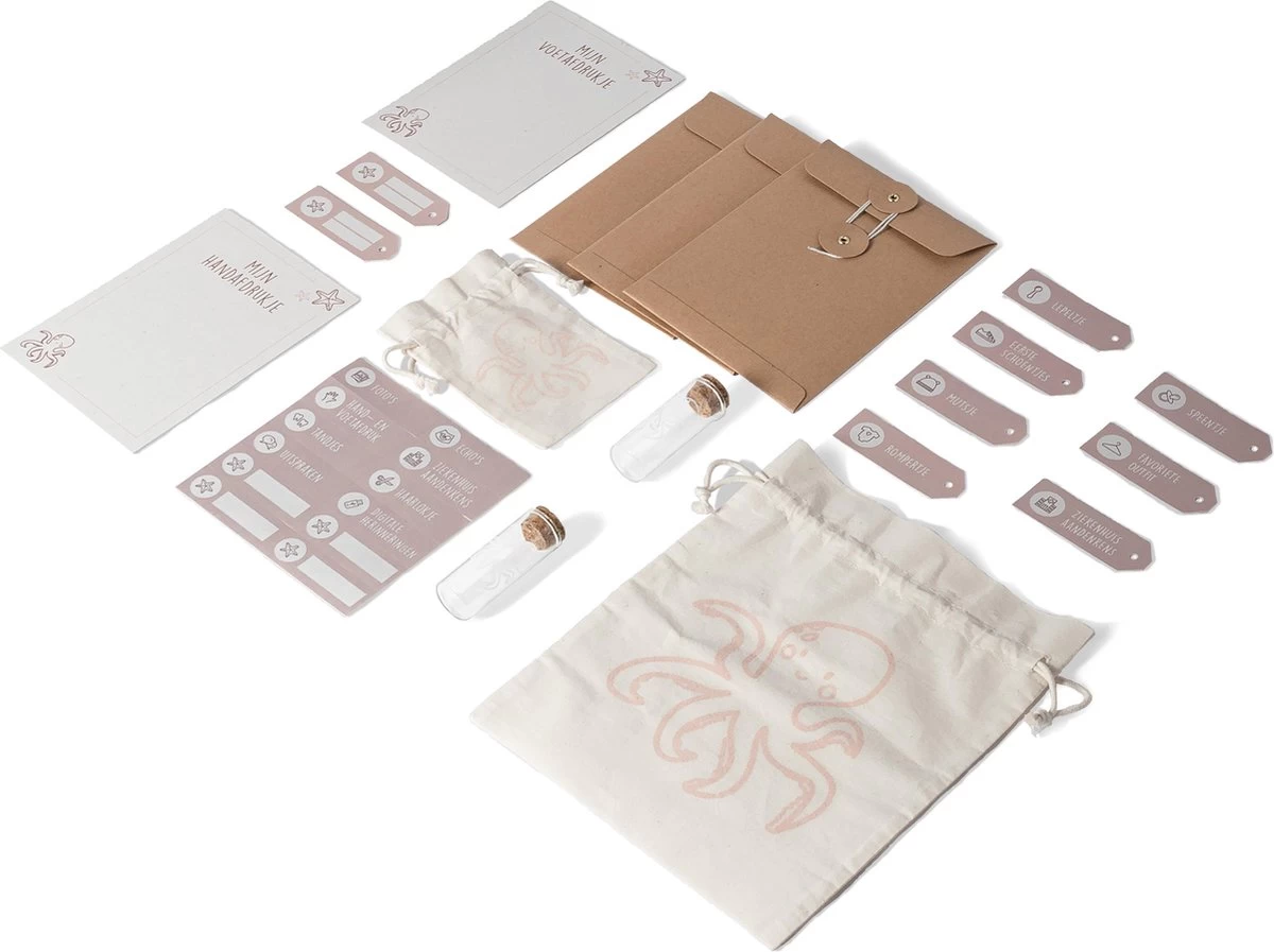 - 2 katoenen zakjes voor het speentje en de eerste schoentjes, maar als je hier wat anders in wilt doen kan dat natuurlijk ook!