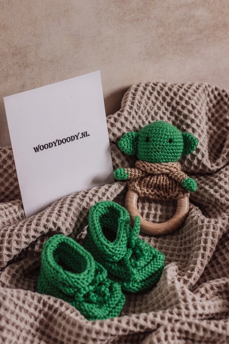 Je kleintje krijgt de eerste tandjes en om dit te bevorderen, is een speelse bijtring belangrijk. Daarnaast zijn de gewoven schoentjes matchend voor een stijlvol karakter en warm gevoel! Naast de bijtring/rammelaar is de set voorzien van natuurlijk handgebreide schoentjes voor de perfecte match.