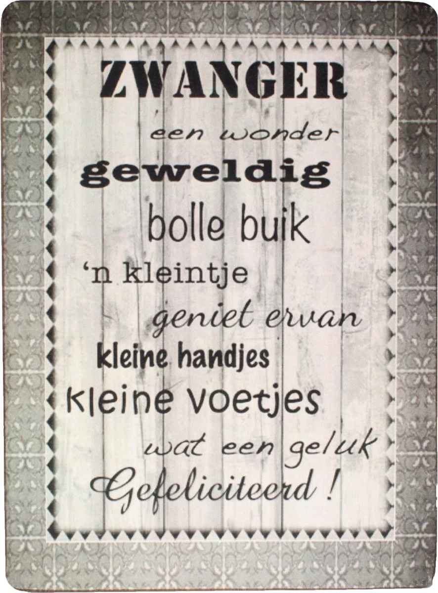 * Tekstbord over zwanger zijn (tekst gedrukt op houten bordje 19x14x0,3cm)