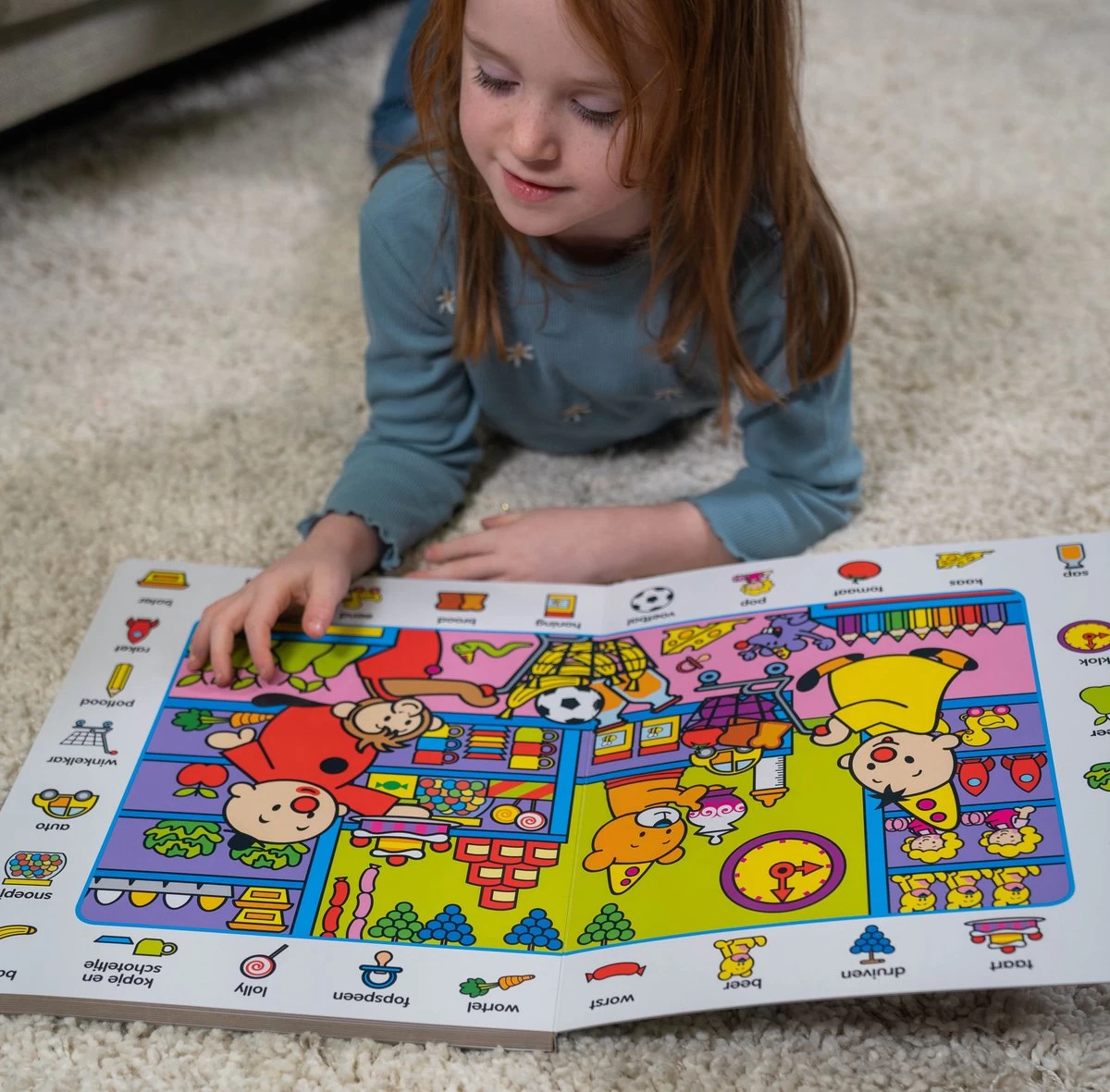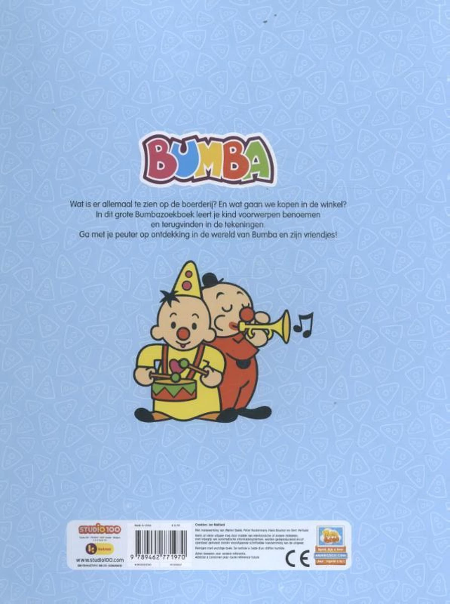 Wat is er allemaal te zien op de boerderij? En wat gaan we kopen in de winkel? In dit leuke Bumbaboek leert je kind voorwerpen benoemen en terugvinden in de tekeningen. Ga met je peuter op ontdekking in de wereld van Bumba en zijn vriendjes! Zie jij Bumba? Vind je de dolfijn? Speelt Gwido trompet? Dat ontdek je allemaal in dit kleurige en extra grote zoekboek van Bumba en zijn vriendjes. Voor extra wakkere speurneuzen! Extra groot formaat van 36 x 28,5 cm.
