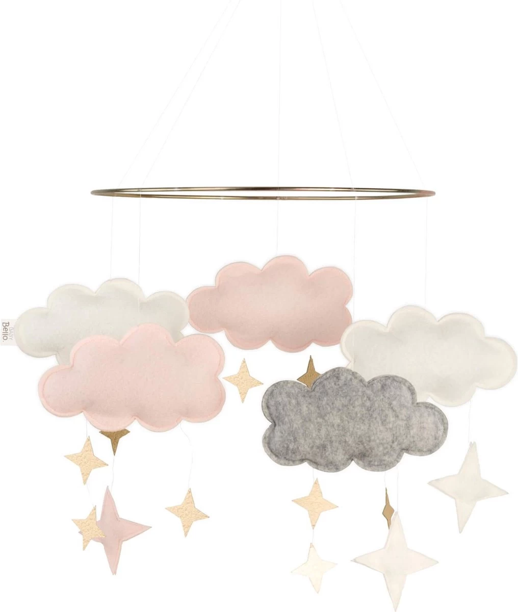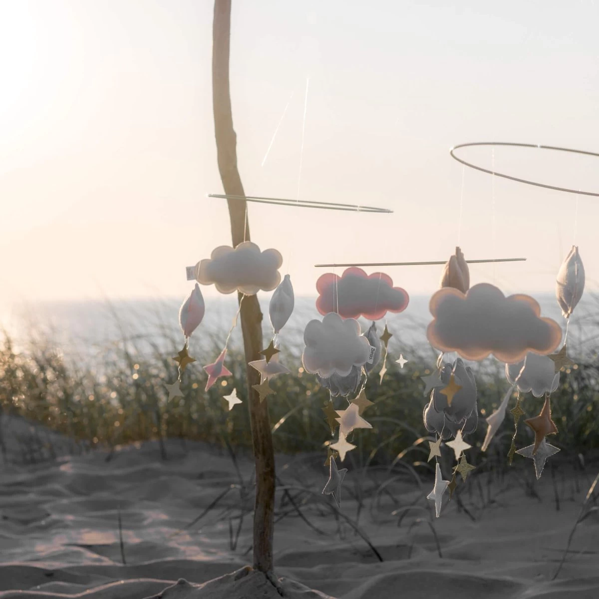 Elke mobiel heeft wolkjes, sterren en gouden sterretjes. De mobiel is gemaakt van 100% royal vilt en komt met een leuke cadeauverpakking. Het perfecte babycadeau!