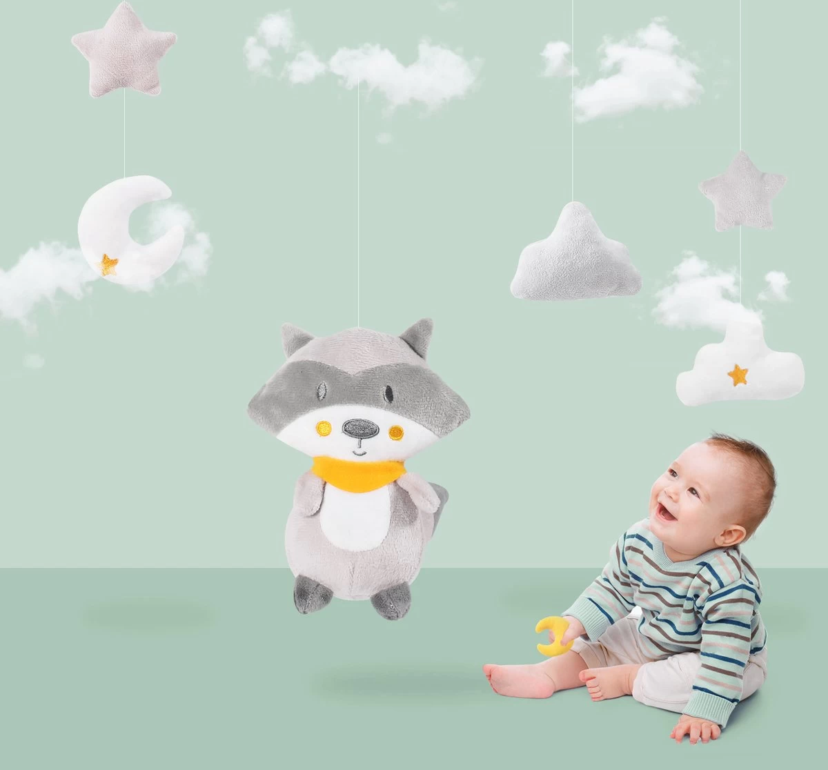 De muziekmobiel werkt rustgevend voor baby’s dankzij het lieve slaapliedje. Baby’s kijken graag naar de beweging van deze speeltjes, wat hun visuele en motorische ontwikkeling stimuleert. Het een kwestie van tijd voordat kindjes naar de vrolijke speeltjes van de boxmobiel zullen proberen te grijpen.
