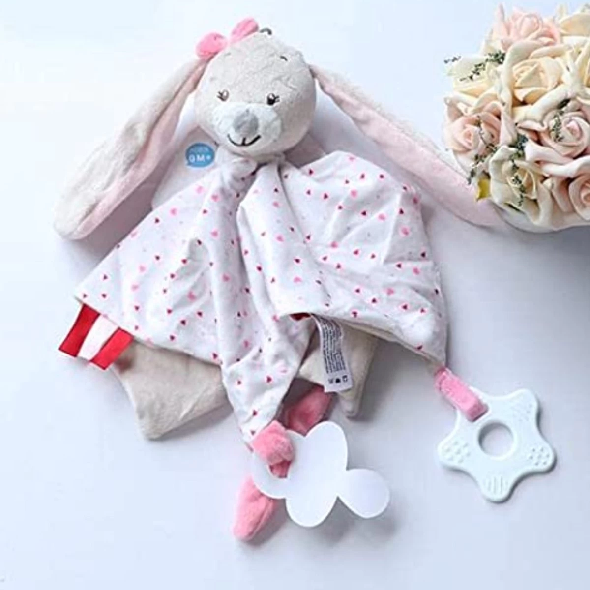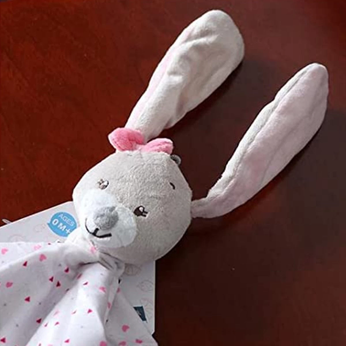Dit pluche knuffeldoekje is zo leuk en stimuleert de visuele ontwikkeling van je kindje. In het hoofd van het konijn zit een belletje en zijn lange oren knisperen.