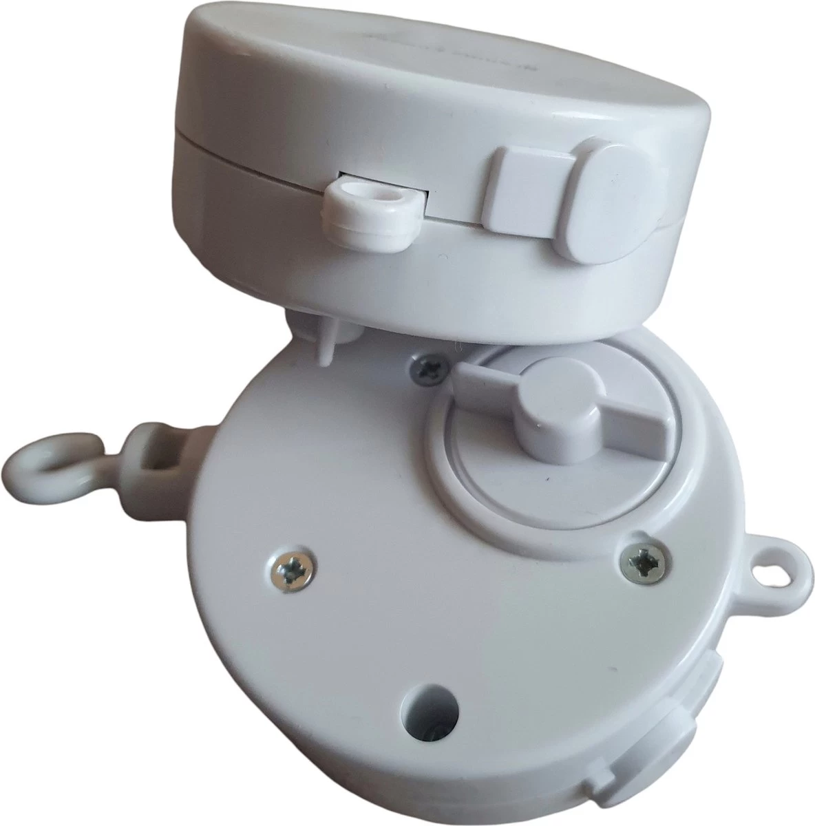 Wit muziekdoosje met draaimechaniek voor aan muziekmobiel met muziekje Twinkle Twinkle Little Star.