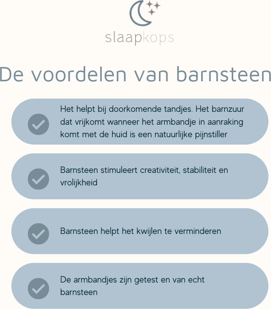 Dit leuke, mooie baby barnsteen armbandje is 14 cm en helpt perfect bij doorkomende tandjes. Zodra het armbandje in aanraking komt met lichaamstemperatuur, versmelten de harsen in het barnsteen. Vervolgens neemt het lichaam dit op en werkt het als een soort natuurlijke paracetamol en verlicht het de pijn.