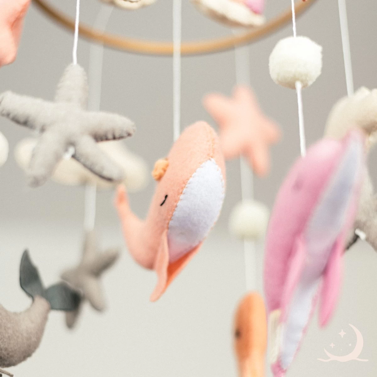 Deze mooie baby mobiel met zeedieren is een echte eyecatcher boven de box of wieg.