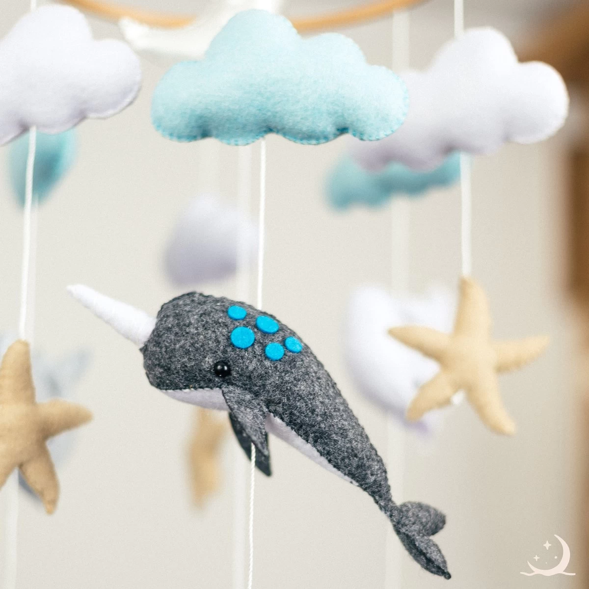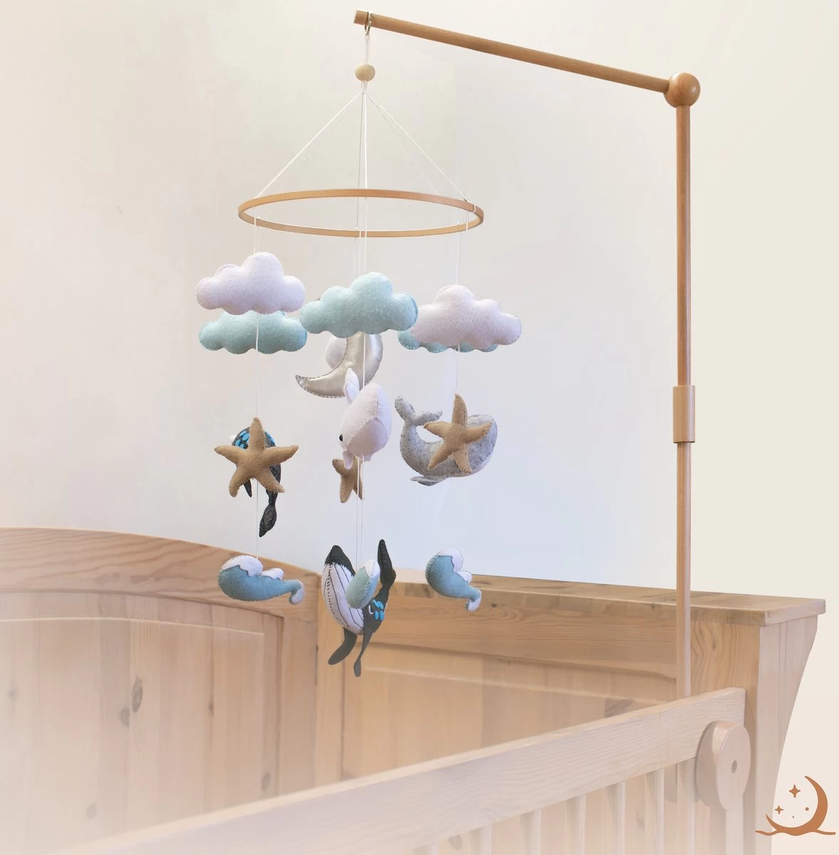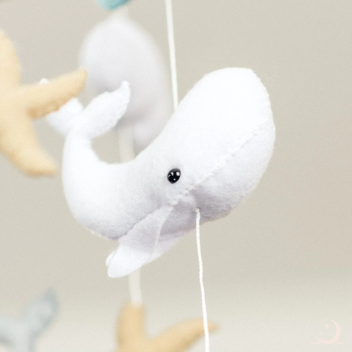 Deze mooie baby mobiel met zeedieren is een echte eyecatcher boven de box of wieg.