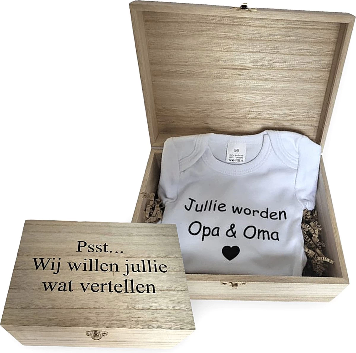 Met dit leuke houten kistje maak je er een mooi moment van om dit te vertellen.